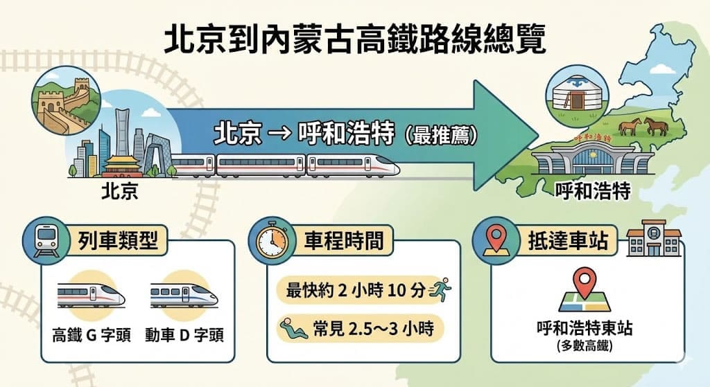 - 📍 抵達車站:呼和浩特東站(多數高鐵)