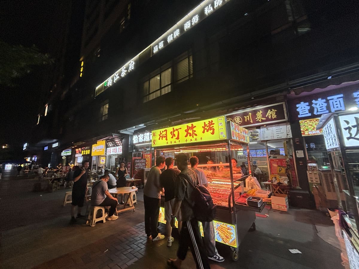 來到成都,如果你晚上沒吃過一頓熱鬧的路邊燒烤,那就等於錯過了一半的成都靈魂!🌶️🍢 在熱氣蒸騰的夜晚,成都的大街小巷隨處可見這樣的場景:鐵架烤爐上火光閃爍,冰櫃裡擺滿串好的蔬菜、肉類、豆干、海鮮,食客