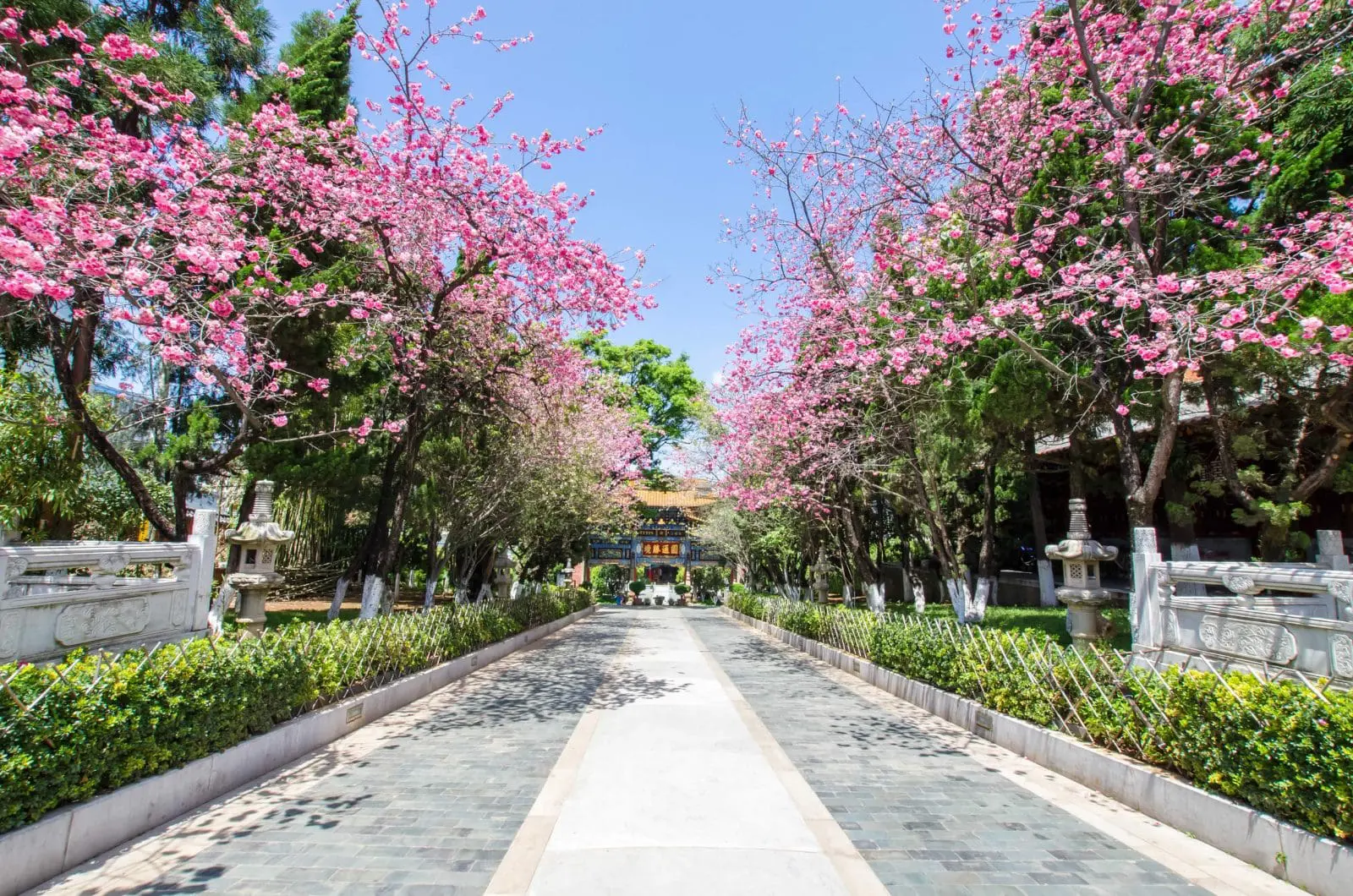 行程特色與景點介紹 宜良山後櫻花谷 宜良山後櫻花谷是昆明近郊最壯觀的櫻花勝地,每年 2 月底至 3 月中旬,山坡從谷底一路染成粉白色,宛如粉嫩雲海。櫻花沿溪谷延伸,視野遼闊,拍照層次感極佳。花季期間人