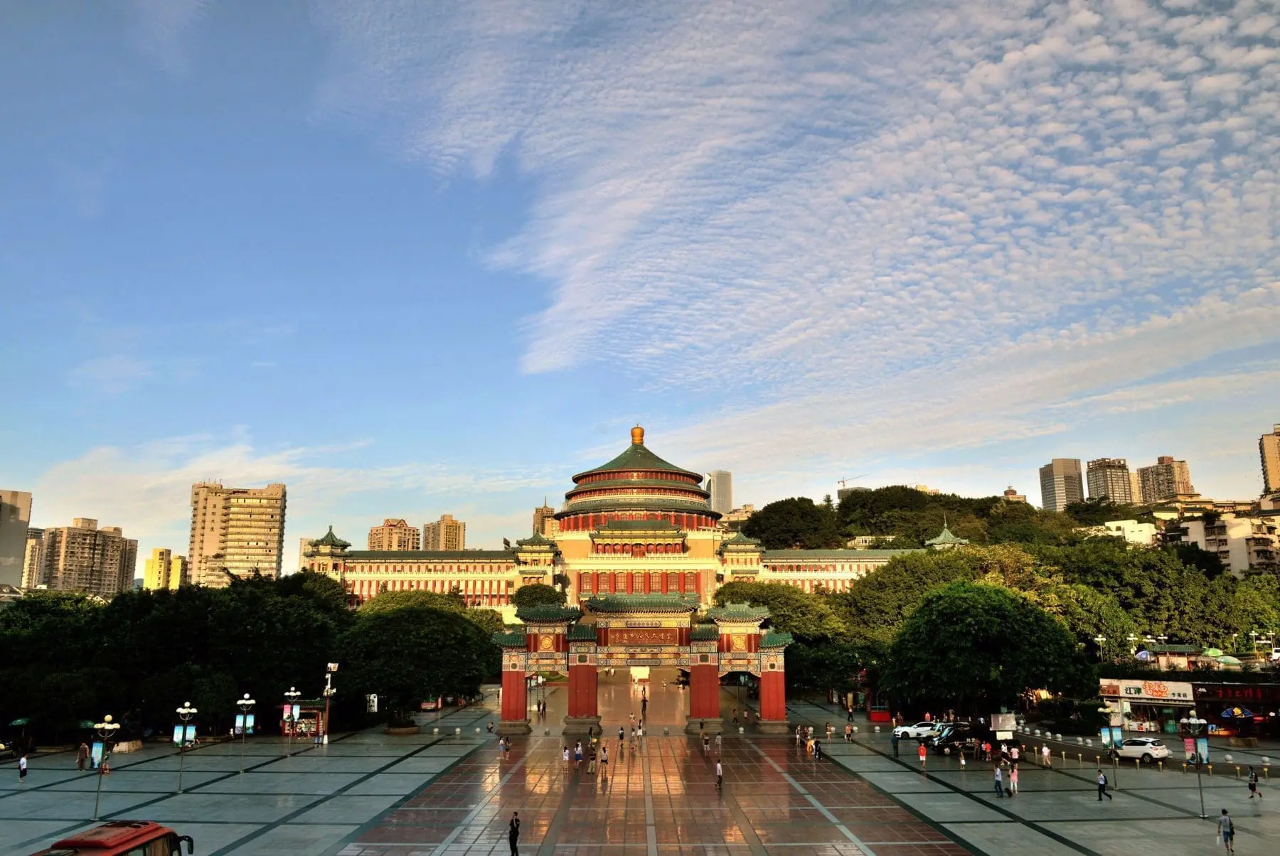 外觀氣勢磅礡、仿天壇建築風格,是重慶最具代表性的公共建築之一,常出現在城市宣傳照中。適合短暫停留拍攝建築壯麗輪廓。