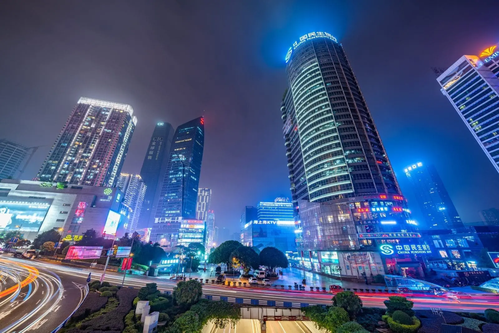 觀音橋九街與解放碑商圈。這裡是重慶最熱鬧的商圈區域,夜景以霓虹、摩天大樓與夜生活聞名,也很好拍街拍大片。