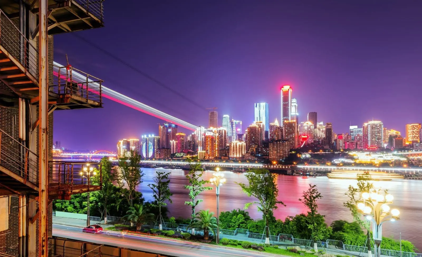 南濱路被稱為「重慶版外灘」,沿著長江設有多處觀景平台。朝天門碼頭更是搭乘兩江夜遊遊船的熱門地點,能從水面欣賞城市夜色。