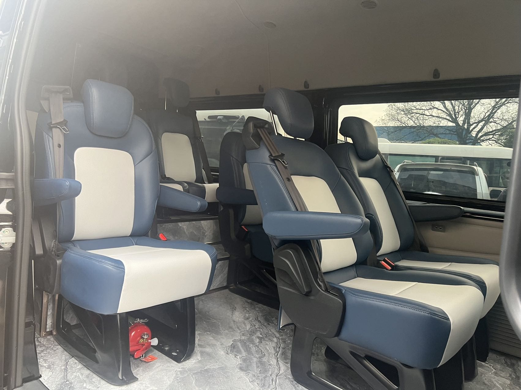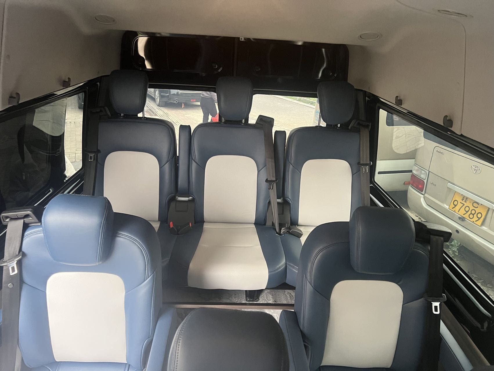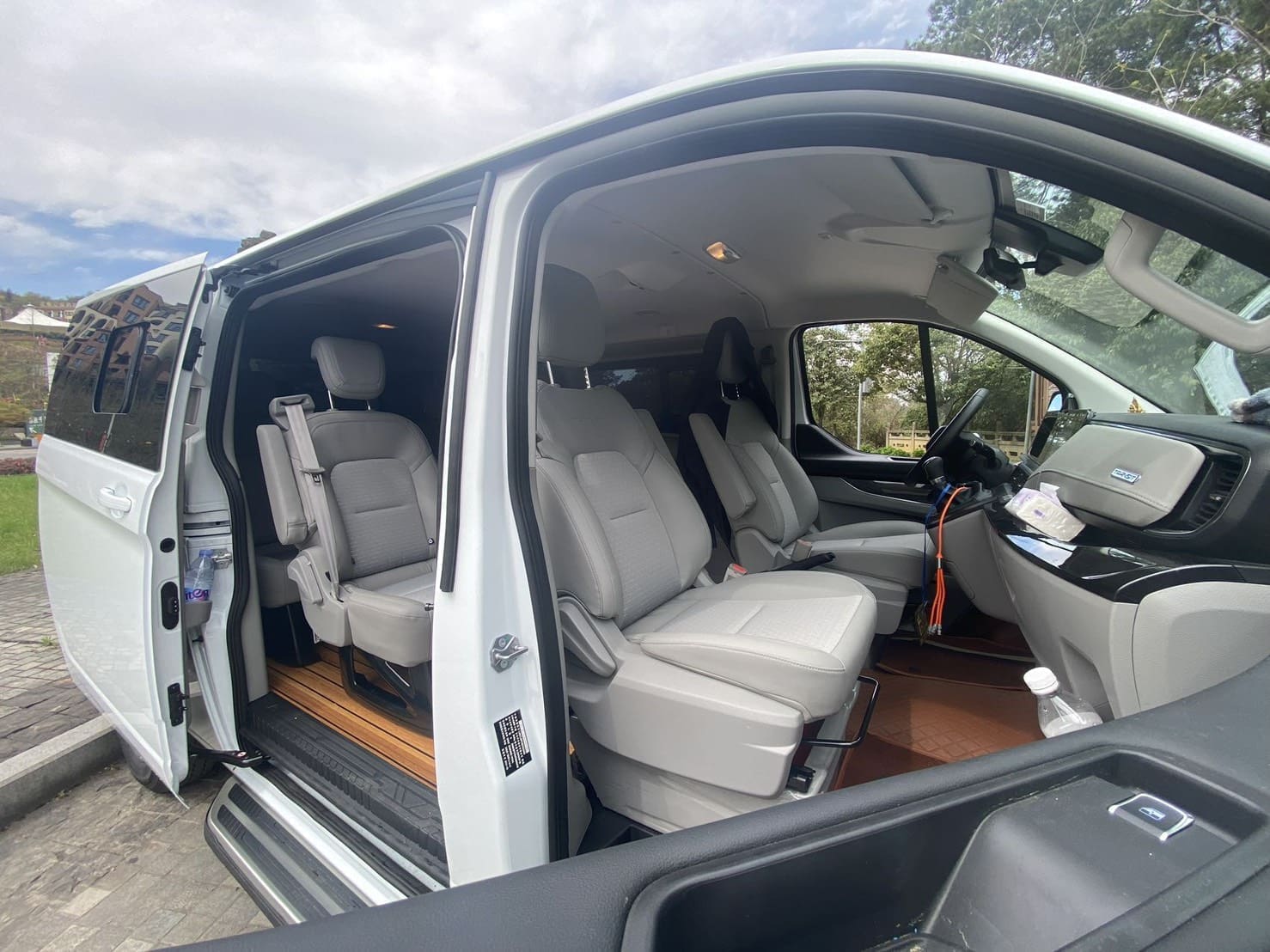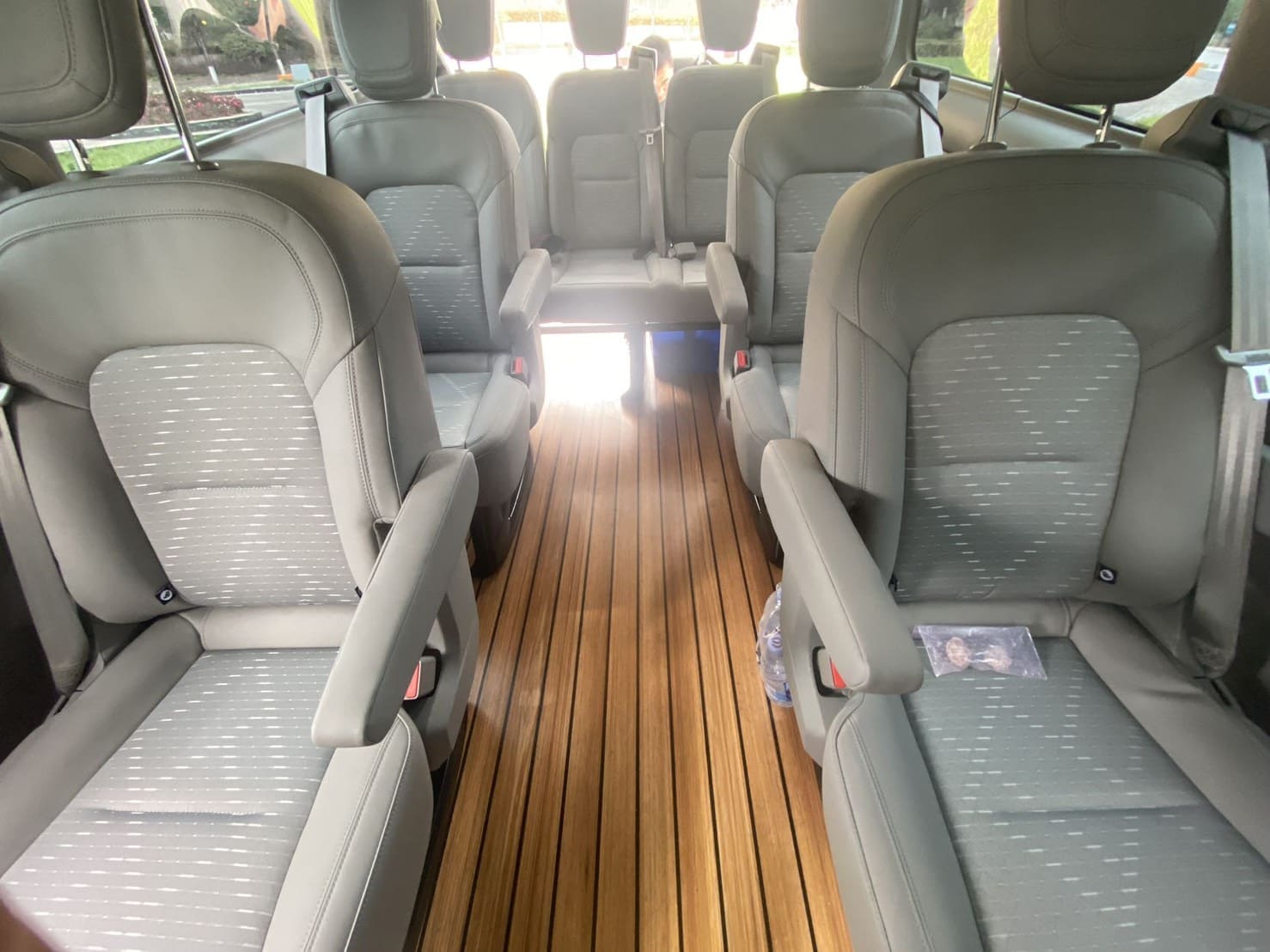 福特全順屬於9座商旅車,標準座位配置為:前排 1名司機+1名副駕,後排共3排座椅,最多可乘坐7位乘客但考量行李空間、乘坐舒適度與長途旅遊需求,實際建議乘坐人數為6人,可預留空間放置大型行李箱,避免擁擠。座椅設計偏高,腿部空間寬敞,適合長途行駛與年長者乘坐,也方便上下車。