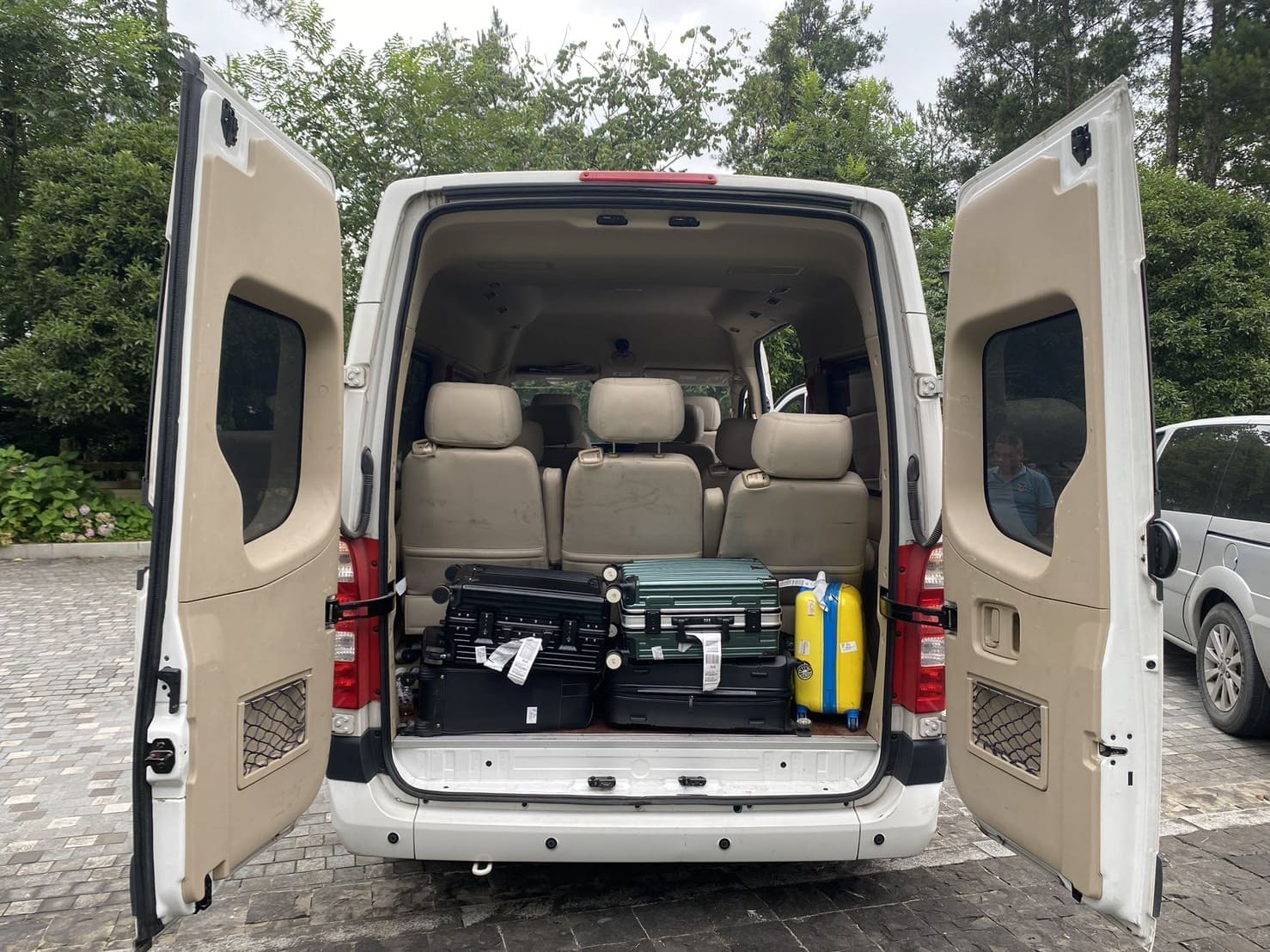 具備9個座位,但考慮行李及舒適度,建議6人包車