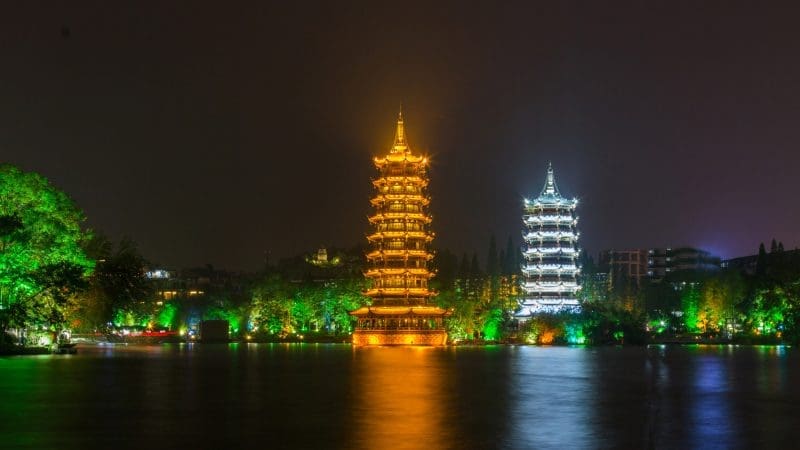桂林最具代表性的城市水上觀光線路,串聯漓江、桃花江、杉湖、榕湖、木龍湖、桂湖等景觀。白天可欣賞山水倒影與城市綠意;夜晚則以燈光映水、橋影婆娑的夜景聞名。搭乘遊船穿梭於古橋、塔影與湖光之間,體驗桂林最詩意的浪漫時刻。