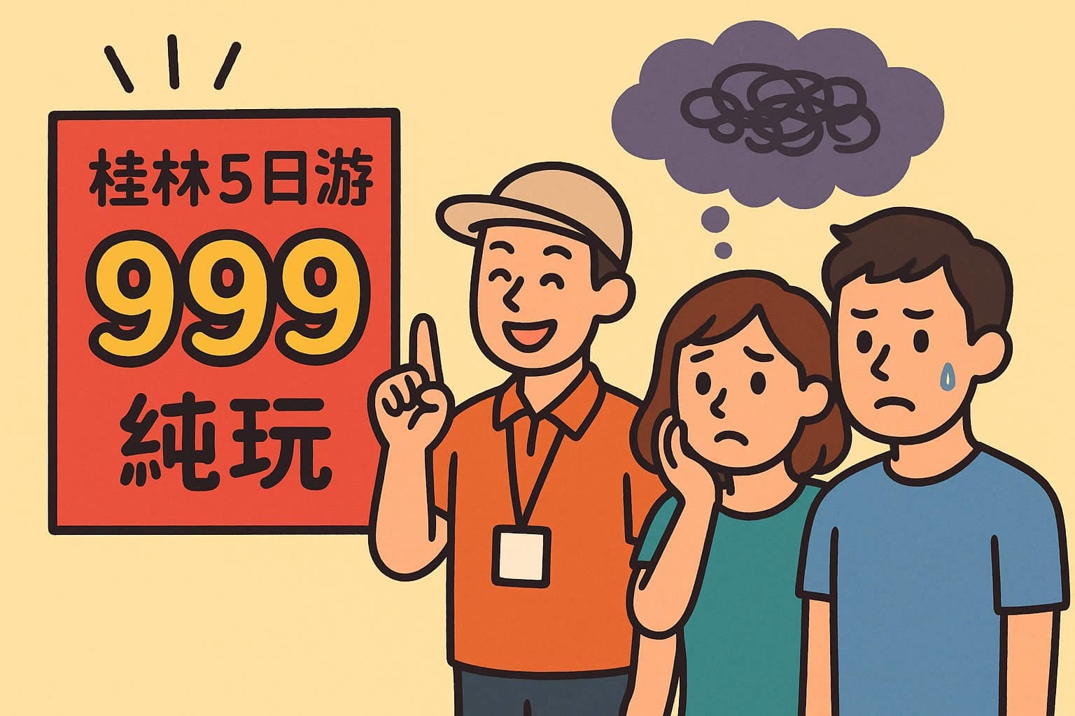 桂林山水聞名世界,也因此成為「低價團」的重災區。許多不良旅行社或黑導遊,利用「超便宜」噱頭吸客,實際卻是靠購物回扣賺錢。以下是常見的五大陷阱👇