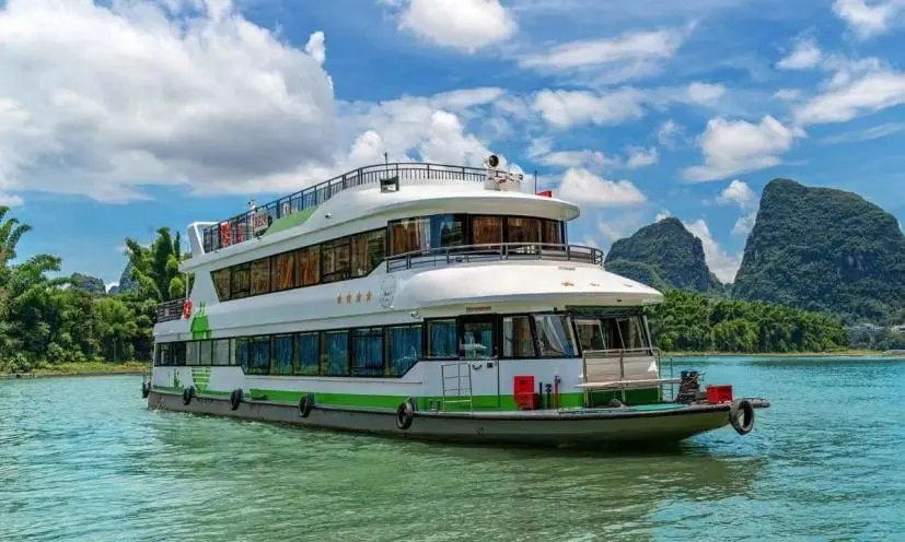 四星船為桂林旅遊局核定的高級遊船,座艙寬敞、冷氣設備完善,含自助午餐與觀景甲板,航行時間約4小時,舒適度與視野均最佳。