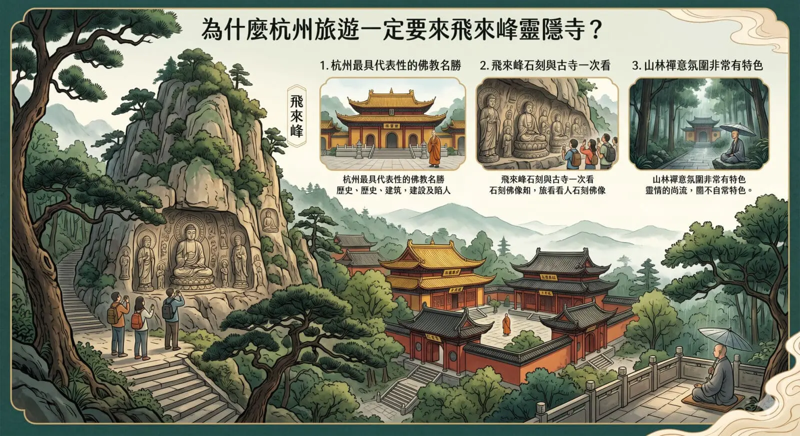 來到杭州,如果你想找一個最能代表這座城市文化底蘊與山水氣韻的地方,飛來峰與靈隱寺幾乎是一定要安排的經典行程。這裡不只是杭州知名景點,更是融合了佛教文化、古剎建築、石窟造像與自然山林的代表性名勝。