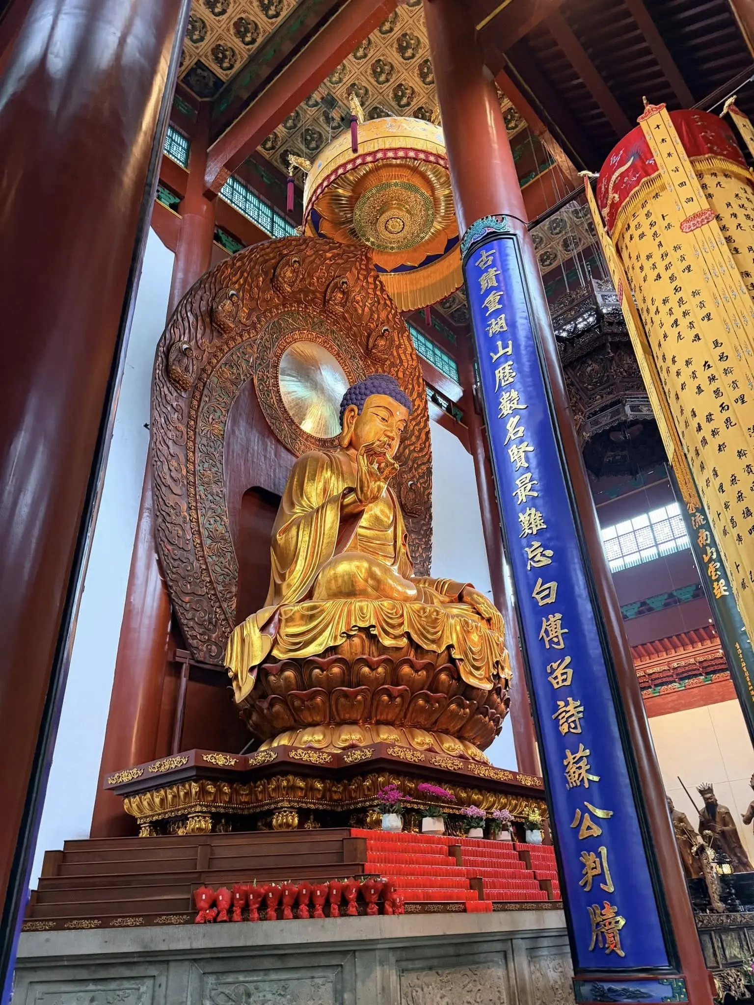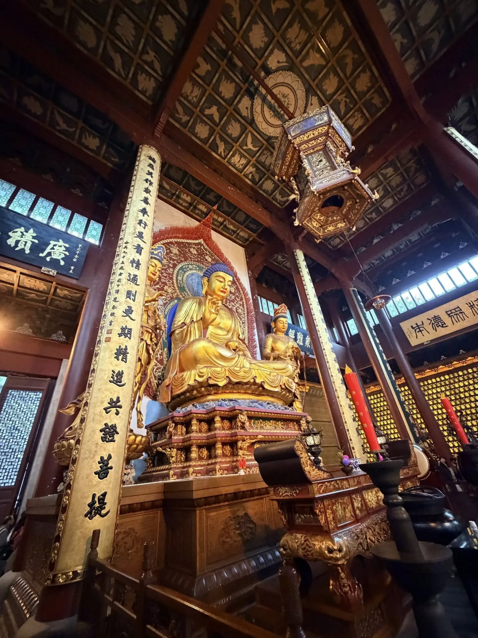 走進殿內,可以看到高大的佛像、精緻的供桌與莊嚴肅穆的禮佛空間。金色佛身在昏暖燈光與深色木構之中更顯神聖,無論是否有宗教信仰,多數旅客在這裡都會不自覺放慢腳步,感受寺內與外部喧鬧截然不同的安定氛圍。