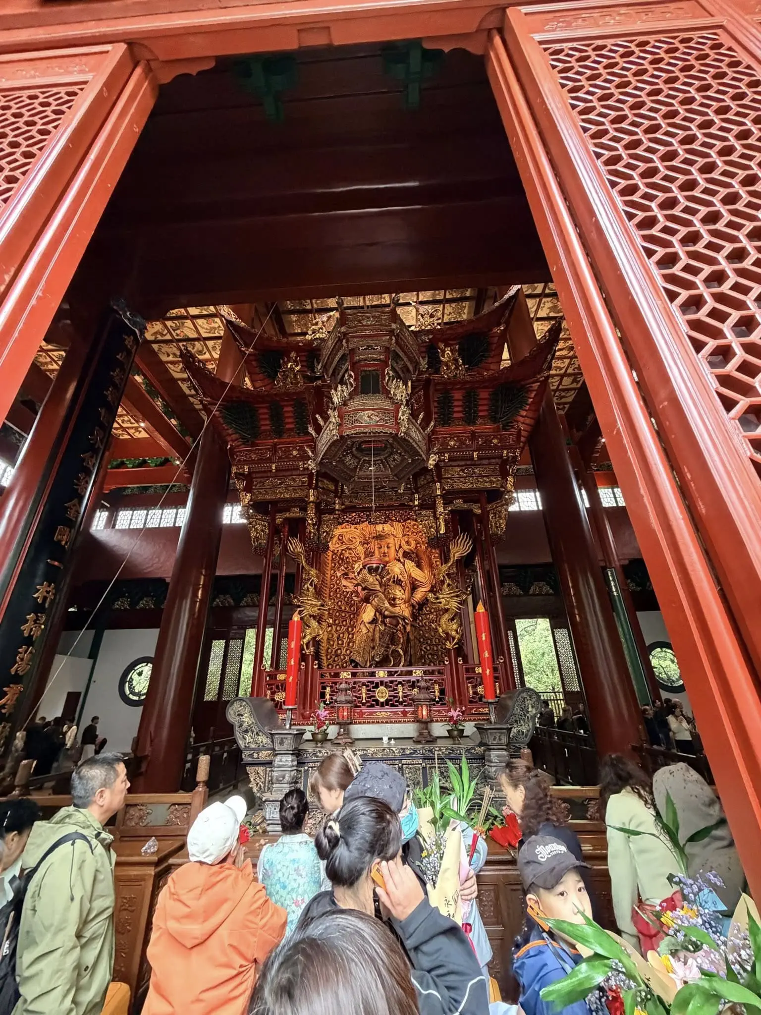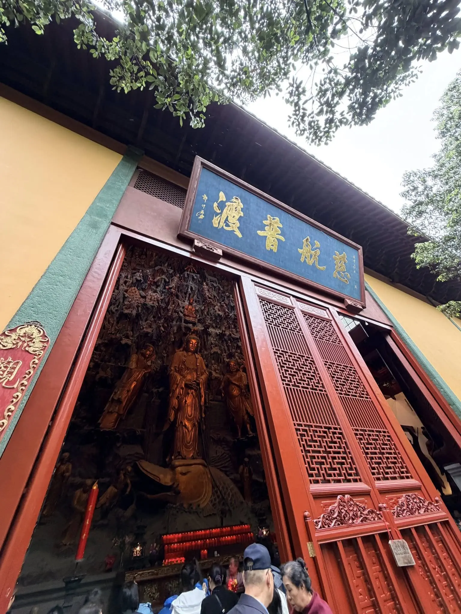靈隱寺內部最令人印象深刻的,除了佛像本身,還有大面積、層次豐富的木雕佛教造像。從人物、神獸到山石場景,雕工細膩而壯觀,近看會發現細節非常多,是很值得停下來慢慢欣賞的藝術亮點。