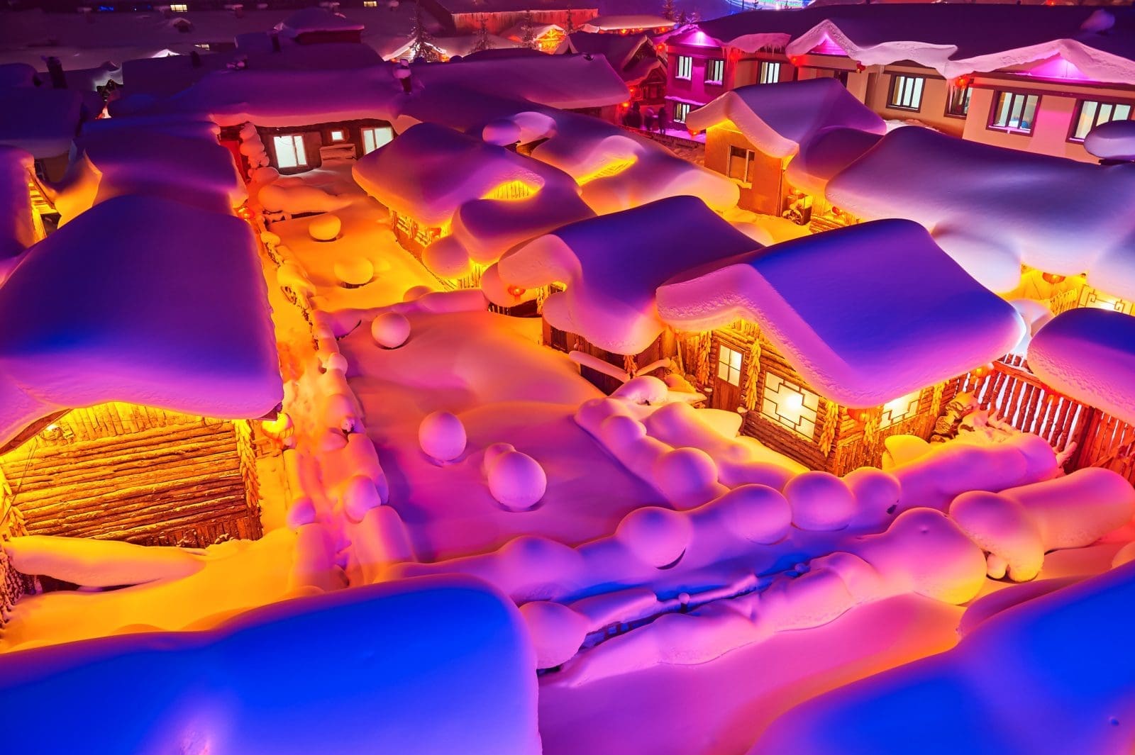 雪鄉的靈魂在「夜晚燈光」與「清晨炊煙」。入夜後,雪蘑菇屋被暖色燈光點亮,街道像童話書翻開;清晨則是雪覆屋頂、煙霧袅袅、安靜到像世界只剩下呼吸聲。住進主景區的好處是時間不被趕:你能慢慢拍夜景、玩泼水成冰,也能睡到自然醒再拍晨景。雪鄉不是打卡一張照就走,而是適合用半天以上去「住進冬天」的地方。