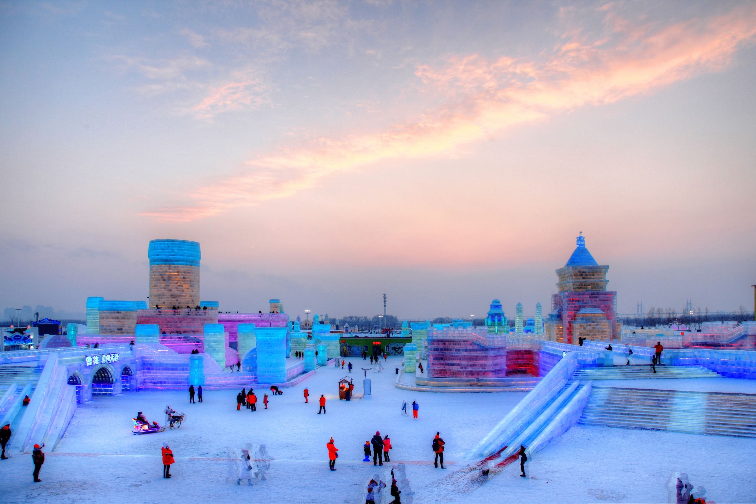 冰雪大世界是哈爾濱冬天的「王牌主秀」:白天像透明水晶城堡,夜晚在燈光映照下變成五彩冰雪王國。園區通常有大型冰建築群、打卡主視覺與多種冰雪娛樂,適合拍夜景、拍建築細節、也適合親子放電。若要玩熱門項目建議預留時間並做好排隊心理準備;想拍到通透感,白天傍晚交界的藍調時刻也很出片。它是那種「不來會遺憾」的哈爾濱冬季名片。