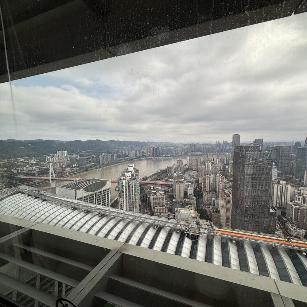 這是位於250米高空的玻璃走廊,能俯瞰整個重慶兩江交會與城市天際線,拍照超級出片!