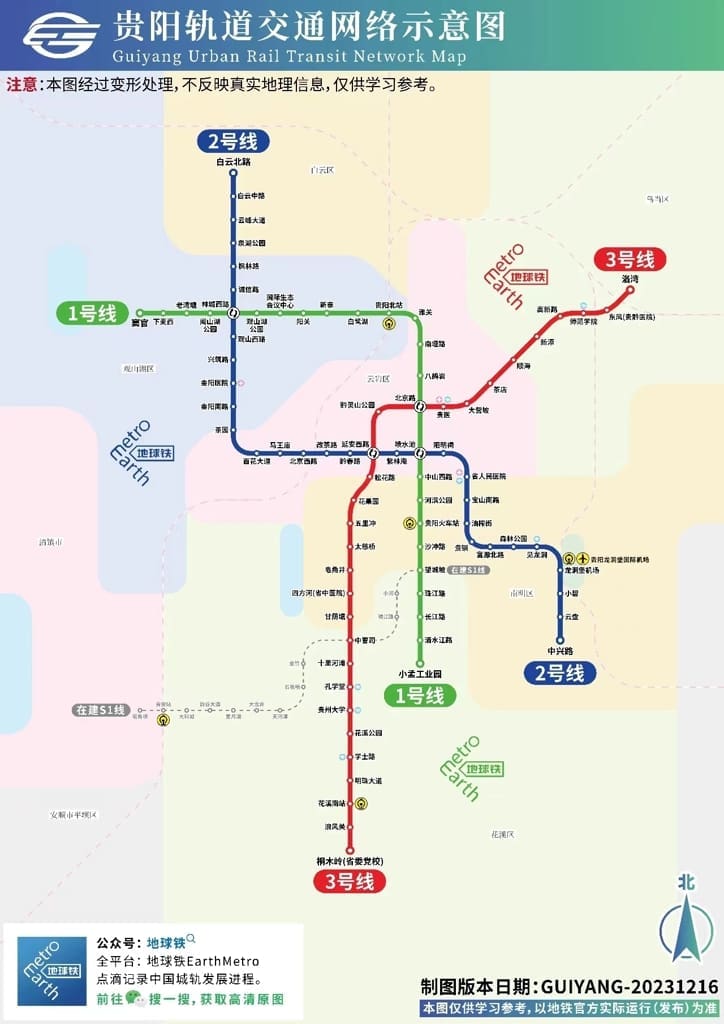 - 貴陽地鐵2號線已於 2021 年通車,機場設有「龍洞堡機場站」,可直通市區與新城區。
