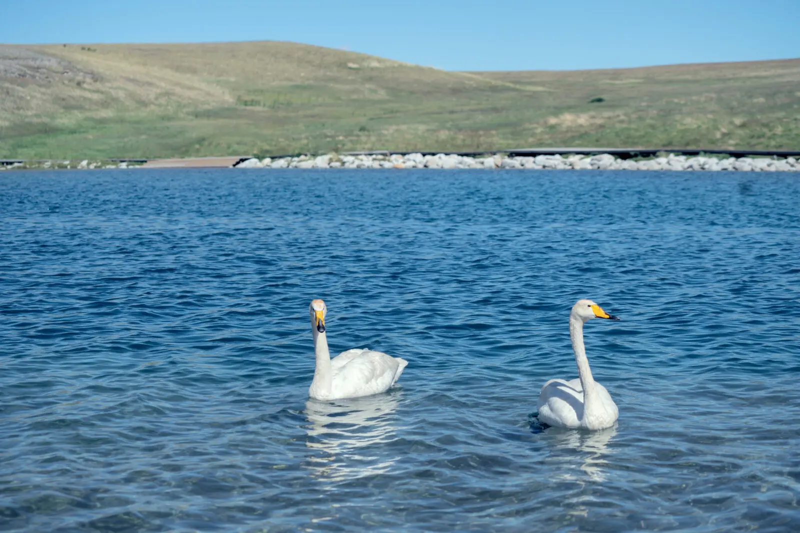 如果想看天鵝,克勒湧珠是賽里木湖最容易看到天鵝的地方。這裡的湖水清澈,環境安靜,常常可以看到十多隻白天鵝在湖面悠游。