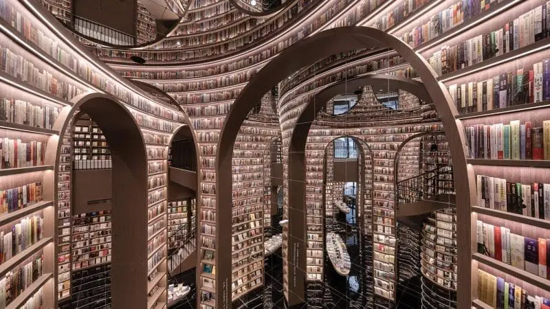 被譽為「最美書店」的鐘書閣,以鏡面與拱形書架打造出如同迷宮般的空間。遊客走入其中,宛如進入藝術殿堂。這裡不僅是書店,更是熱門的網紅打卡地,無論閱讀或拍照都令人流連忘返。