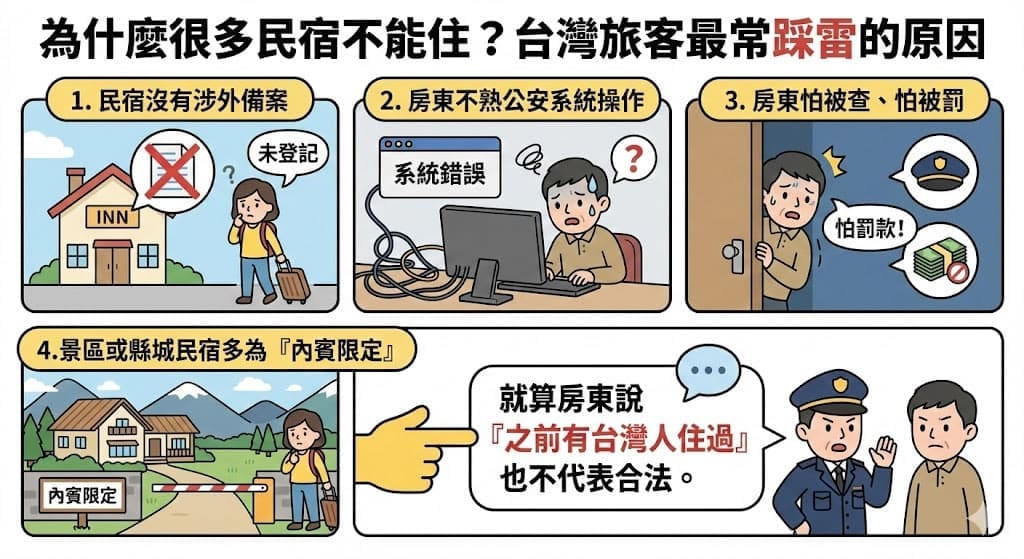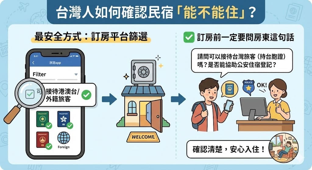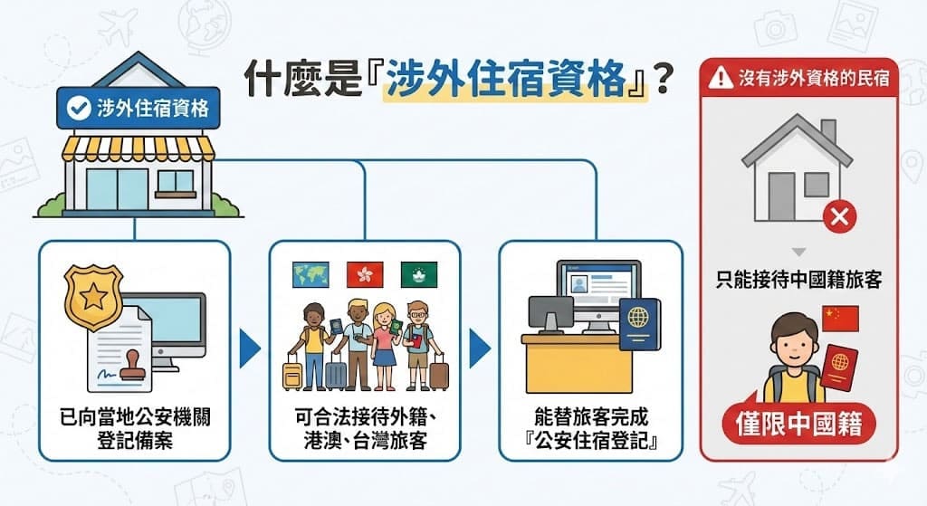 👉 民宿必須具備「涉外住宿資格」,才能合法接待台灣旅客(持台胞證)