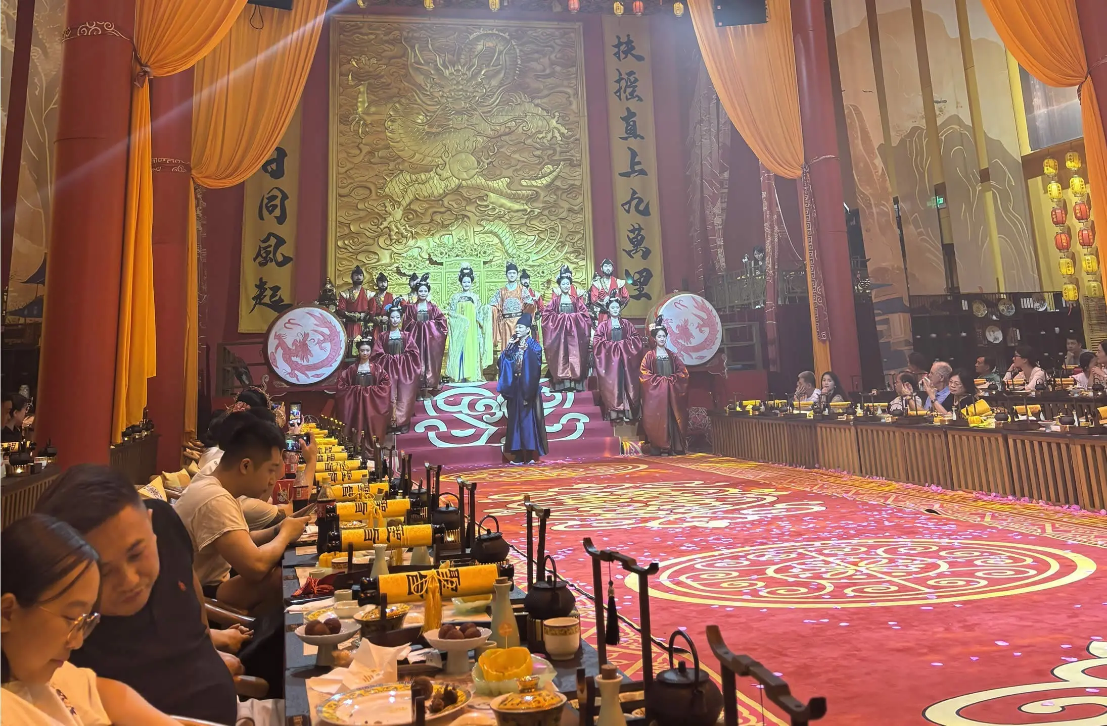 重慶「慶渝宴宮廷秀」結合巴渝飲食文化與沉浸式宮廷表演,一邊品嚐重慶特色佳餚,一邊欣賞舞蹈、樂曲與情境演繹,重現古代盛宴氛圍。華麗服飾、燈光舞美與互動橋段,讓用餐不只是吃飯,更像參與一場穿越時空的宮廷盛宴,適合旅遊必訪與拍照打卡。