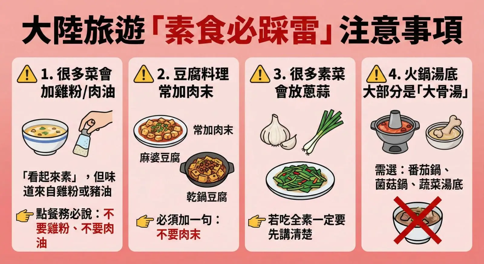 ❗ 3. 很多素菜會放蔥蒜