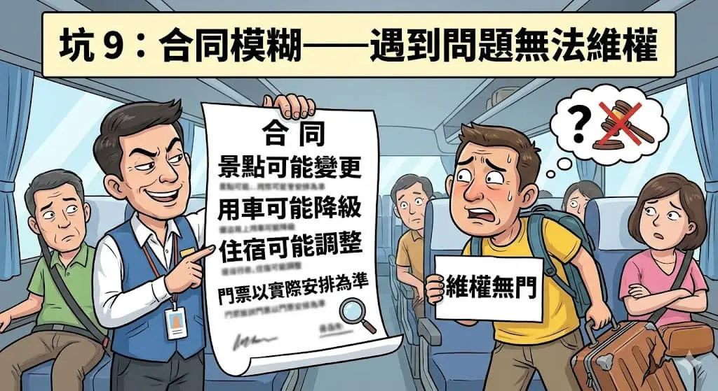 很多跟團合約寫得模糊不清: