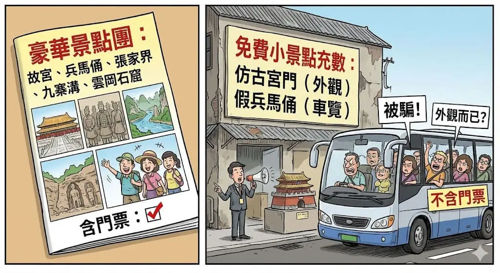 但很多團只做:車覽、外觀、不含門票,甚至用免費小景點充數,旅客覺得被騙。