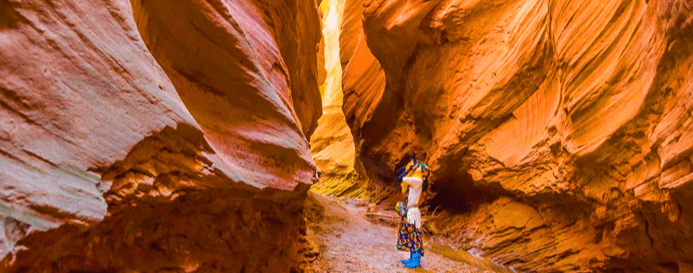 雨岔大峽穀被地質學者稱為「黃土高原的自然地縫奇觀」,由遠古地震與長年洪水沖刷所形成。峽谷內岩壁垂直聳立,通道最窄處僅容一人通行,光線灑落時,岩壁呈現出金黃、赭紅與柔和光影層次,畫面極具戲劇感。由於地處偏遠、商業氣息極低,至今仍保有原始樣貌,常被拿來與美國羚羊峽穀相比,是陝北最神秘、也最令人驚艷的地質秘境。