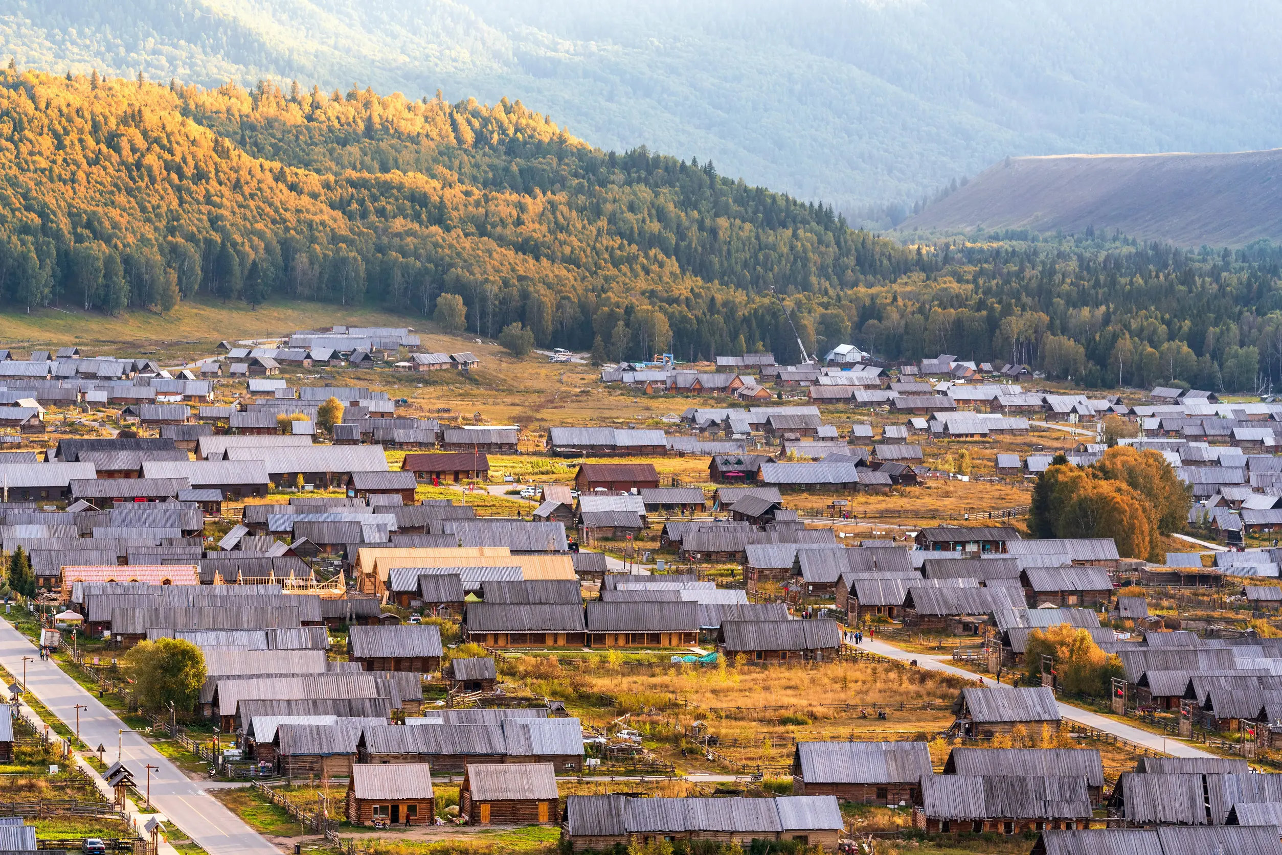 禾木村位於阿勒泰山區,是圖瓦人聚居的古老村落,也是新疆最具童話氛圍的村莊之一。村中保留大量傳統木屋,四周被森林與草原環繞。清晨炊煙與晨霧交織的景象極為夢幻,被許多攝影師稱為「中國最美村落之一」。