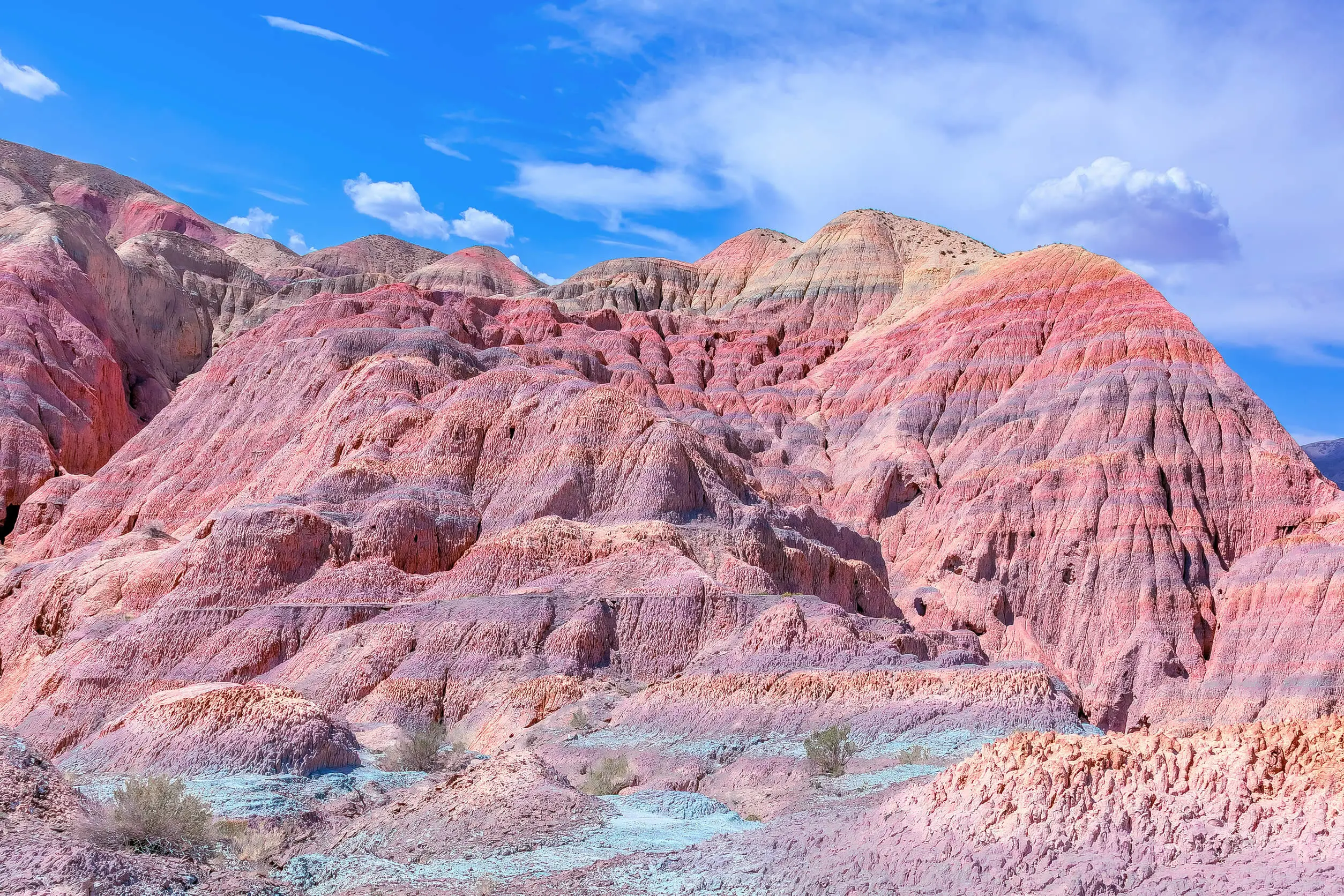 火燒山位於新疆卡拉麥裡自然保護區附近,因山體呈現鮮紅色而得名。陽光照射下整座山看起來像燃燒的火焰,景觀十分壯觀。這種紅色岩層是長年風化與礦物沉積形成的特殊地貌,也是新疆戈壁地區極具特色的自然景觀之一。