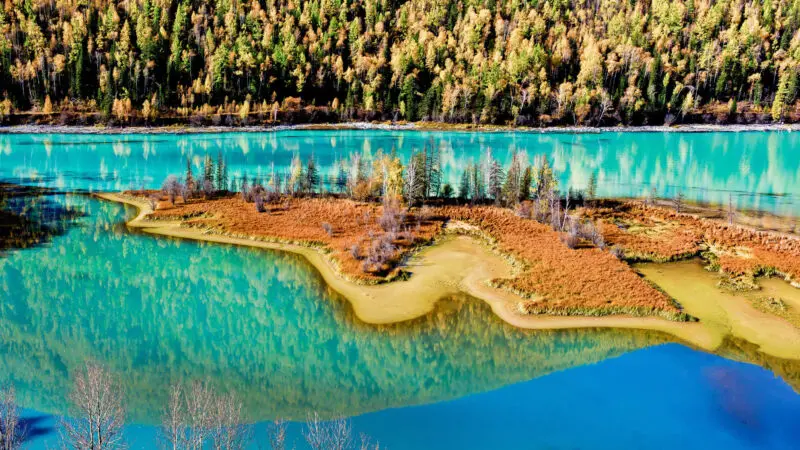 喀納斯白樺林是北疆最具代表性的森林景觀之一。高大的白樺樹整齊分布在山谷與河畔,樹幹潔白、樹葉細密。每到秋季,整片森林會變成金黃色,與藍色湖水與遠山交織成絕美畫面。漫步其中能感受寧靜自然,是喀納斯旅遊不可錯過的景點。