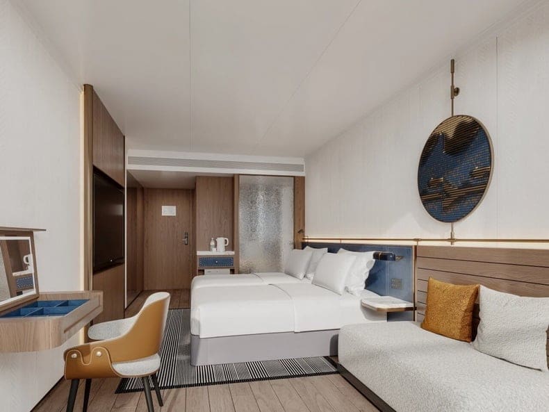2026 年首航,所有房型、設施、公共空間全面更新。大廳、甲板、餐廳均以高星級度假酒店的概念打造,航行更平穩、隔音更佳,拍照出片率也比舊船大幅提升。