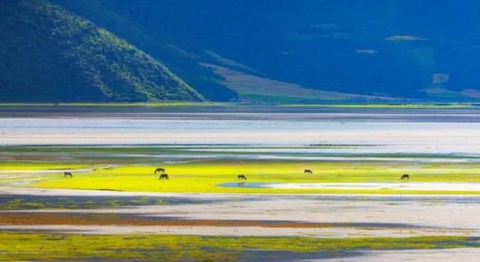 香格里拉高原湖泊,旱季是草原,雨季成湖,牛羊與候鳥成群。