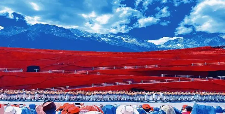 以雪山為背景的實景大秀,展現納西民族文化與磅礴氣勢。